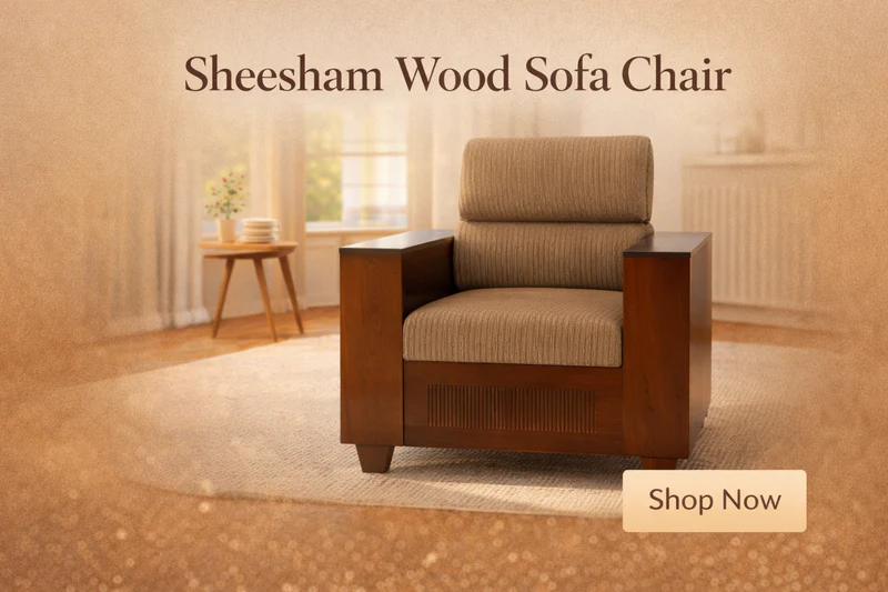 Our sofa collection offers something for every home, from solid Sheesham wood sofas with natural charm to plush fabric sofas, sectional sofa sets, sofa cum beds, and recliners Sofa. Each sofa is built with kiln-dried neem wood frames, sag-resistant foam, and breathable premium fabrics Sofa. With over 50+ fabric options, you can customize your sofa to suit your home décor and lifestyle.