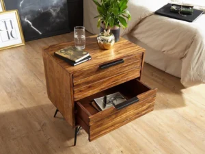 Royal sheesham bedside table with 2 drawers storage