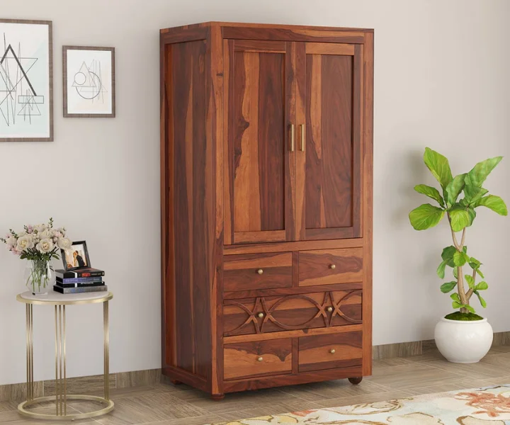 Built from high-quality solid Sheesham wood, this wardrobe ensures long-lasting durability and strength. Its sturdy structure makes it suitable for regular use while maintaining its elegant finish over time.