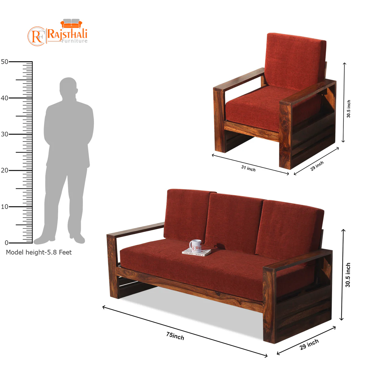 Made from high-quality Sheesham wood, this sofa set is known for its strength, durability, and natural grain patterns. The rich wooden texture enhances your living room décor, giving it a warm and luxurious feel.