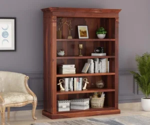 Solid Sheesham Wood Bookshelf for Living Room Royal Sheesham ek high-quality furniture piece hai jo 100% solid sheesham wood se bana hai. Iski strong construction aur natural durability ise long-lasting aur daily use ke liye perfect banati hai.